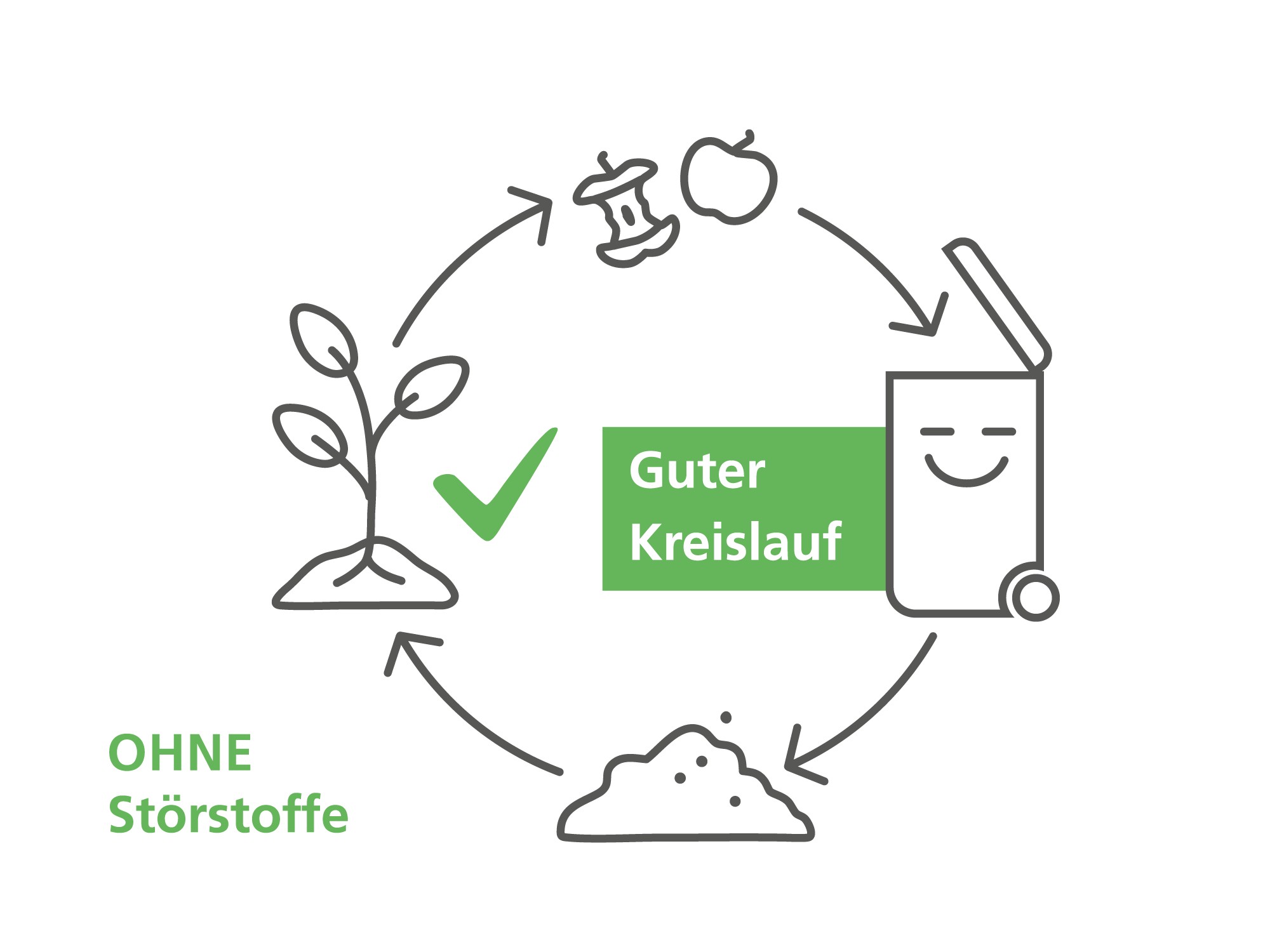 Aus unseren Küchen- und Gartenabfällen entstehen Kompost und Biogas – also natürliche Dünger, die wir direkt auf unseren Böden nutzen können sowie erneuerbare Energie.